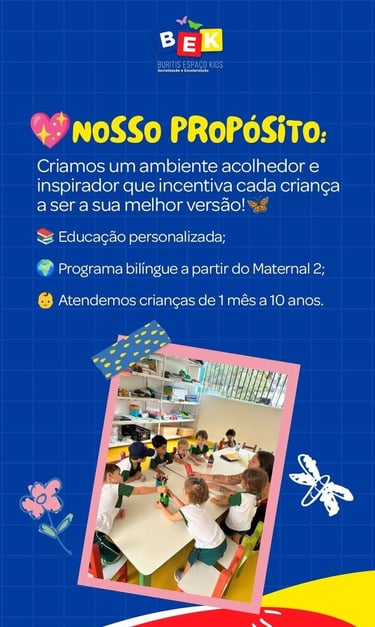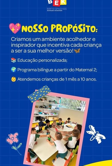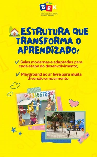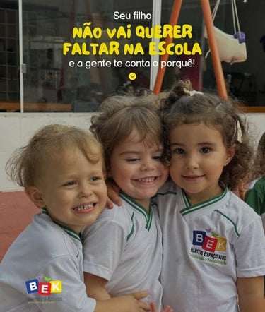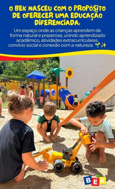 Na Bek, proporcionamos um espaço divertido e educativo, onde as crianças aprendem através da prática e da interação, sempre guiadas por profissionais qualificados em um ambiente seguro e acolhedor.